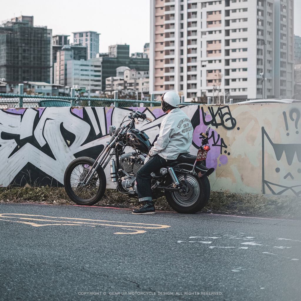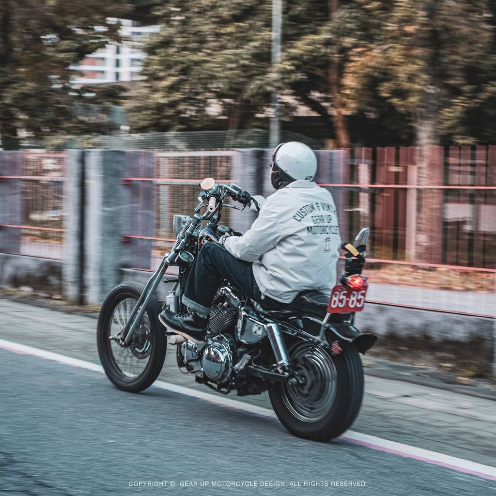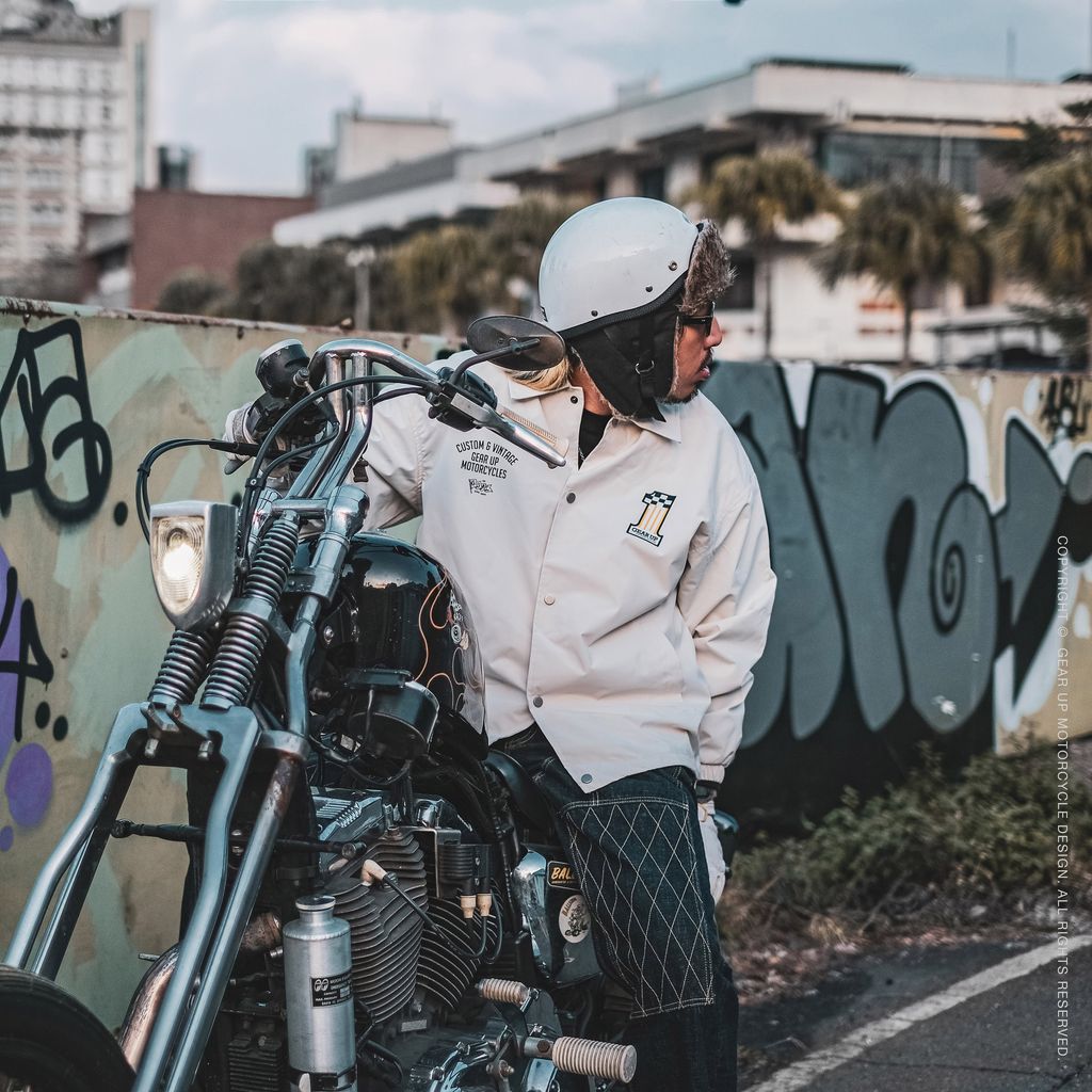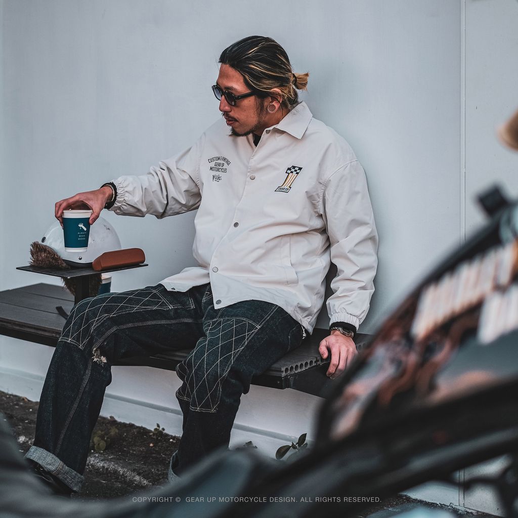 這次有別於以往深色,這次選用了米白色的外套來製作,讓濃厚的日系騎士感更顯俐落,在黑壓壓的車陣中一眼就能脫穎而出。 不論是搭配經典老車還是城市通勤,都能在粗獷中帶出細緻的層次感。基本帥度有了,再加上防風、防潑水的硬核實力,絕對是最值得入手的全能單品!